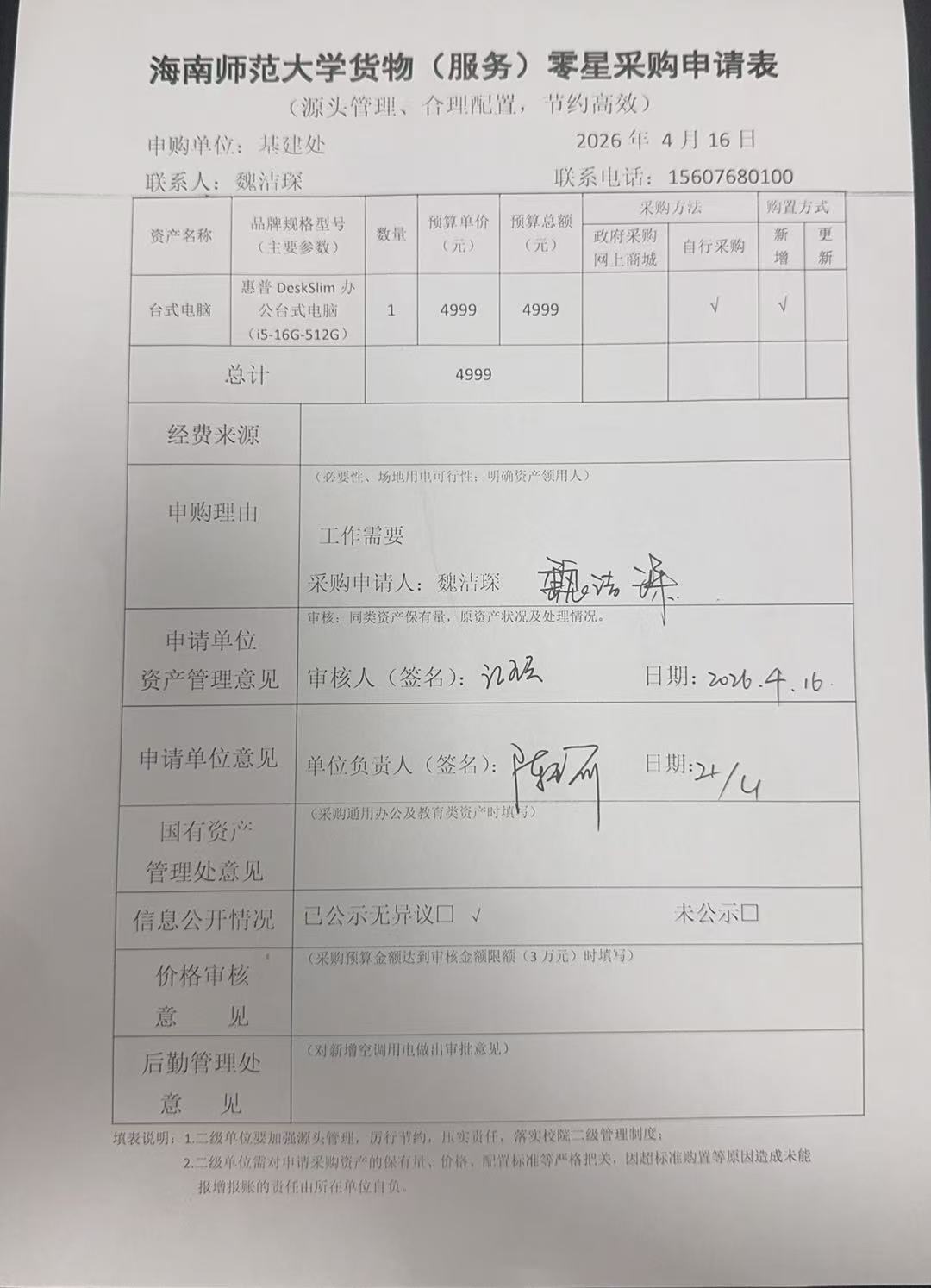 海南师范大学货物(服务)零星采购申请公示
